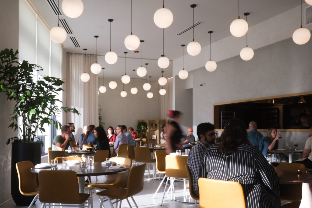 The menu is inspired by cuisine from both the Mediterranean and the American South, with a focus on balance—a nod to “aperture” in photography. From hummus to sweet potato, to duck breast, and porchetta, you can travel the world and back at this restaurant.